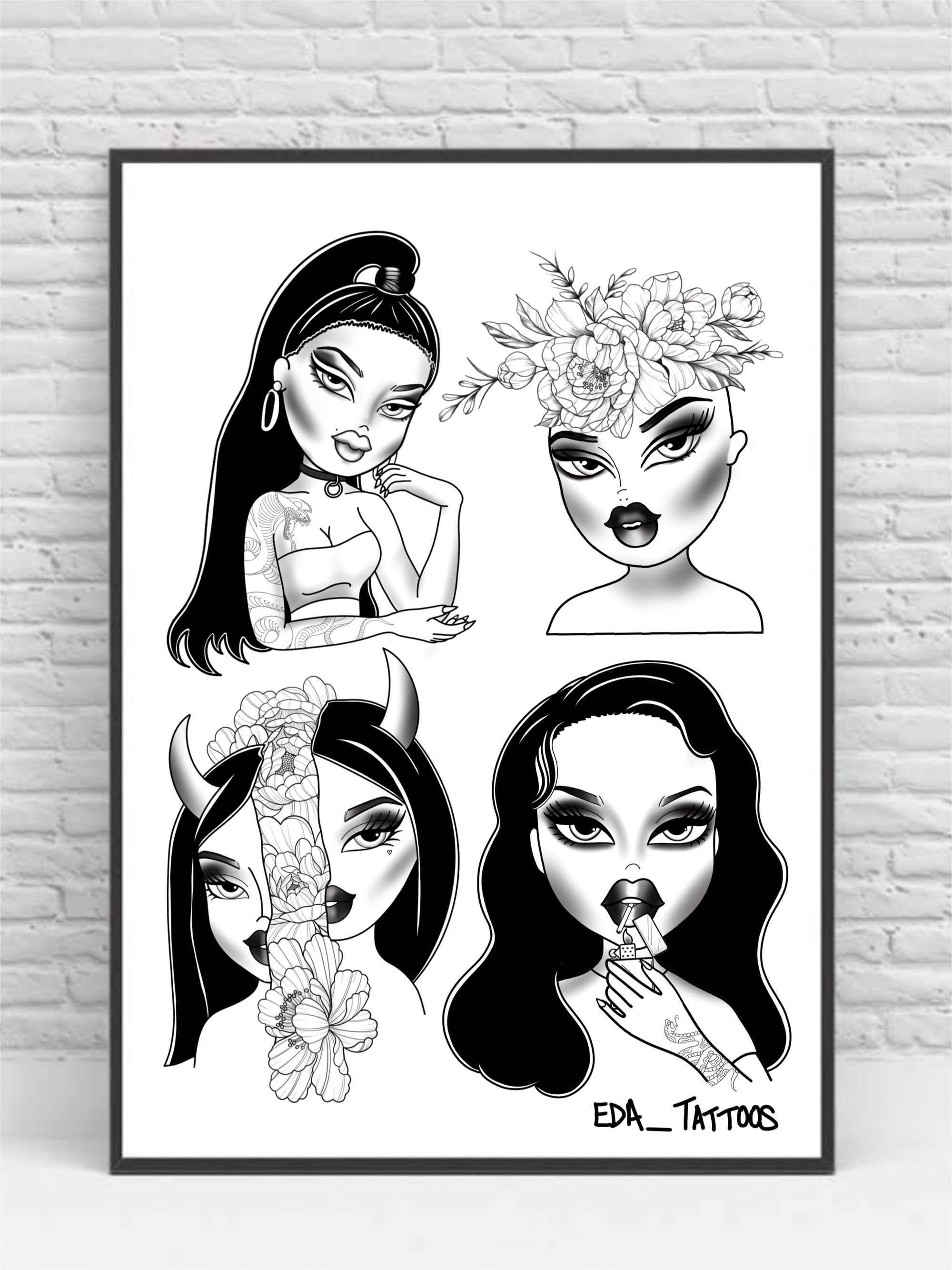 4 Bratz inspired girls tattoo art print
